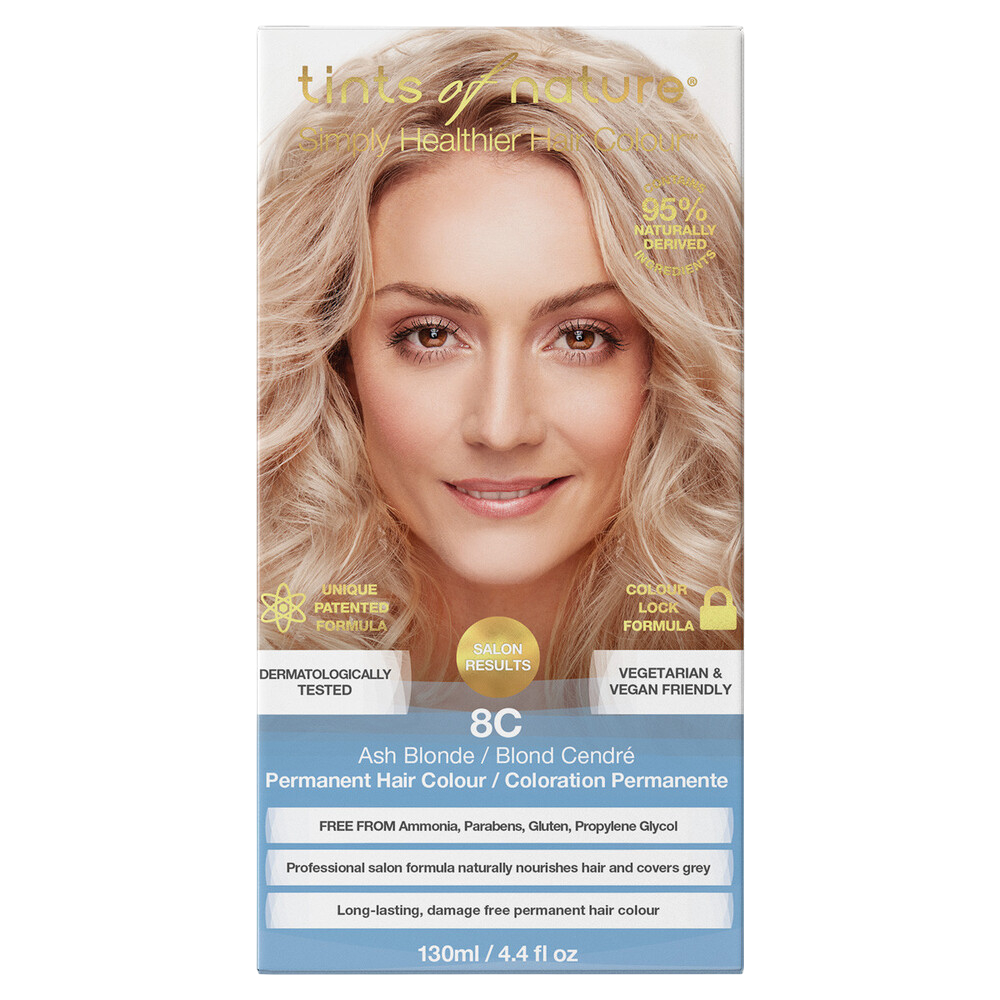 Rediscover happier, healthier hair with Tints of Nature 8C Ash Blonde patented permanent hair dye for a stylishly cool, icy blonde that is naturally glossy and full of shine.